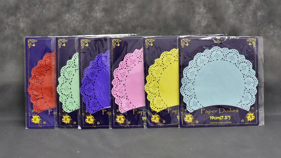 מפית תחרה עגול צבעוני 16.5 ס”מ (ירוק, ורוד, צהוב, סגול, אדום, תכלת) 6 במארז