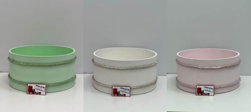 חבית מעץ קוטר 35 ס”מ גובה 18 ס”מ ורוד/ירוק מנטה