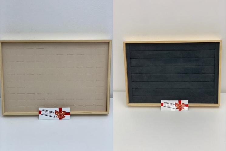 מגש מעץ לטבעות (100 חריצים) קרם/אפור