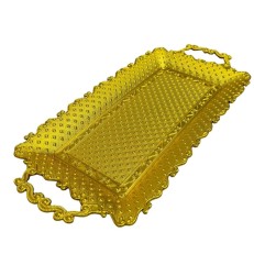 מגש פלסטיק מלבן מרוקע מעוינים עם ידיות בצד 45/21 ס”מ זהב
