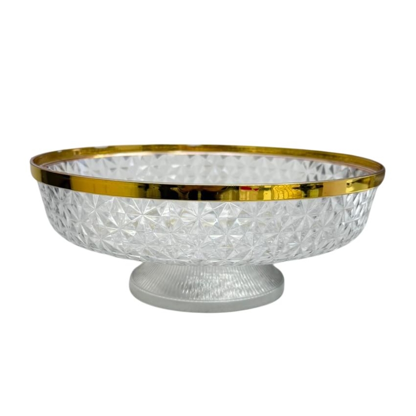 מגש פלסטיק עגול שקוף על רגל מסגרת זהב 26 ס”מ
