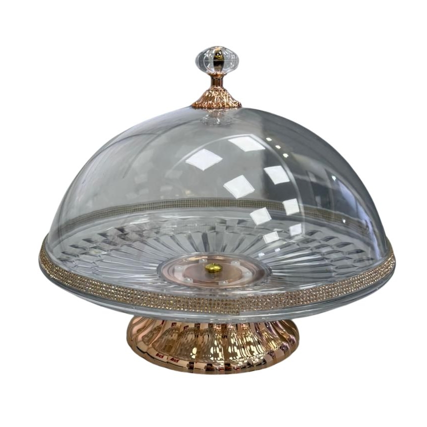 מגש פלסטיק שקוף על רגל מכסה פעמון 28 ס”מ זהב