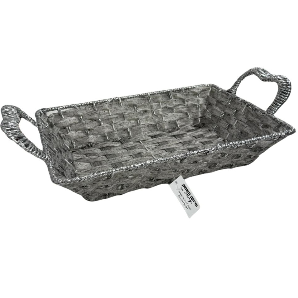 סלסלה ראטן שתי וערב עם ידיות וגימור כסף 35/25+8.5 ס”מ