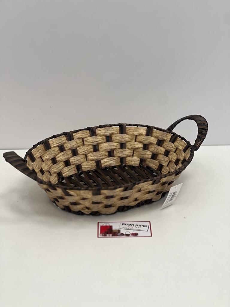 סלסלת פלסטיק אובלית עם ידיות 31/25+8 ס”מ חום