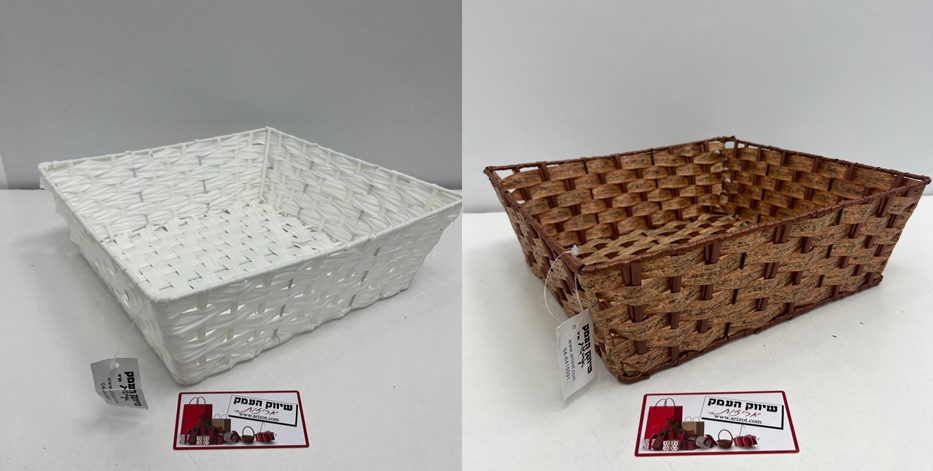 סלסלת פלסטיק מרובעת 30/30+10 ס”מ חום/לבן