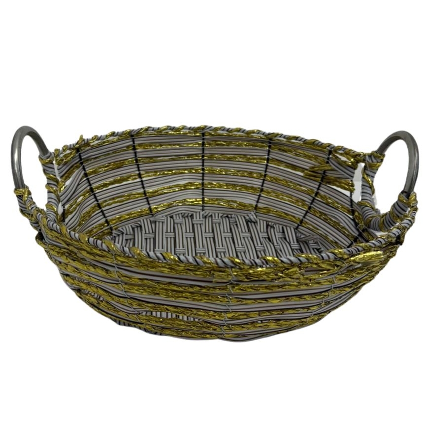 סלסלת ראטן עגולה פסים זהב ידיות אלומניום 35/11 ס”מ לבן שחור