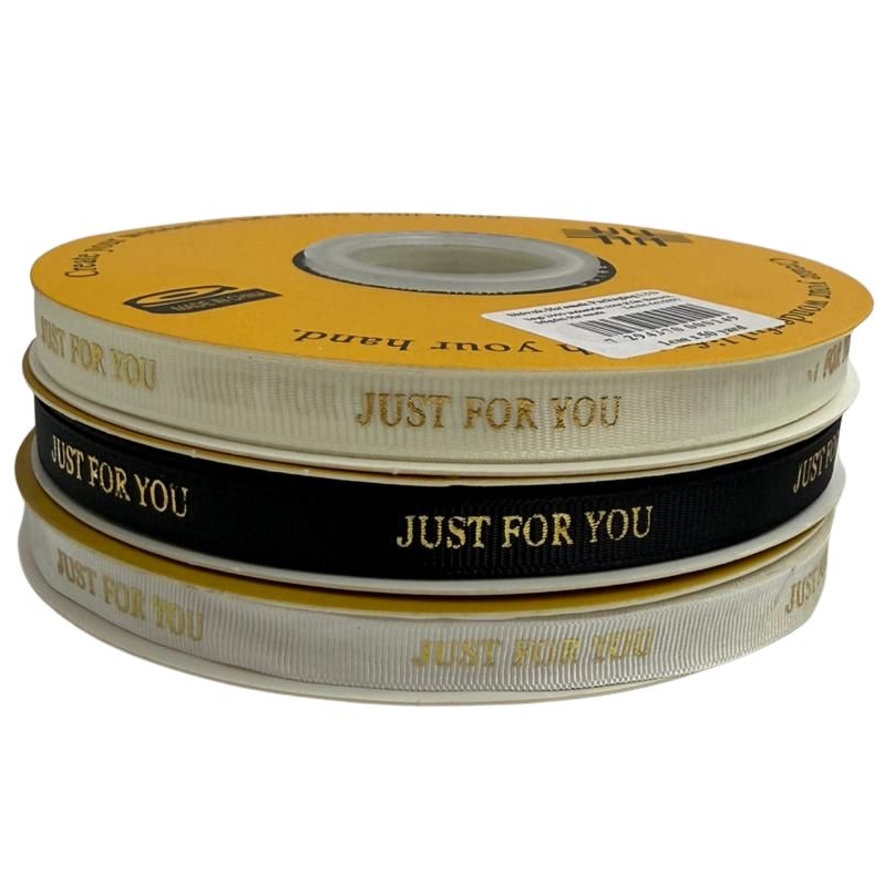 סרט קישוט בד 10 מ”מ עם כיתוב זהב (50 מטר)