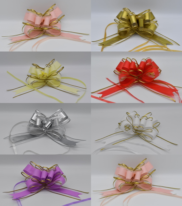 סרט קישוט משיכה 50 מ”מ מט אדום,זהב,כסף (10 במארז)