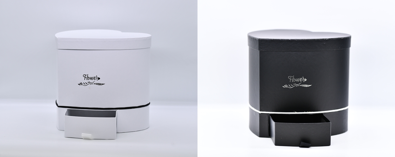 קופסת פרחים לב עם מגירה 24/18+16 שחור/לבן