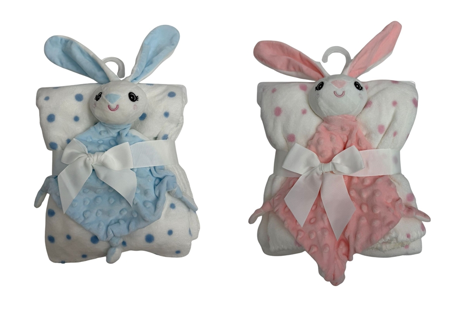 שמיכה לתינוק עם בובת ארנב כחול ורוד 90/75 ס”מ