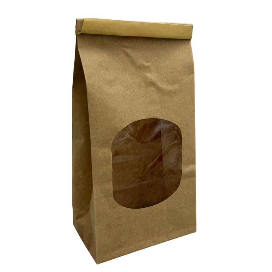 שקית נייר קראפט עם חלון סגירה מתקפלת 9/18+5 ס”מ (25 יח’) חום