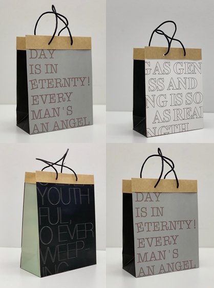 שקית נשיאה נייר דגם אותיות 25/33+12 ס”מ (12 יח במארז) לבן/ אפור/שחור