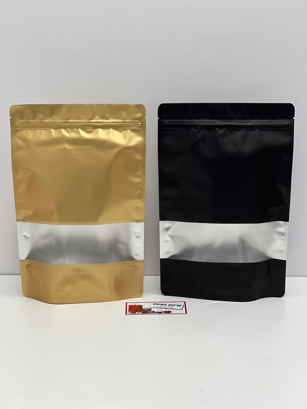 שקית פס סגור 24/35+5 ס”מ (50 במארז) זהב/שחור