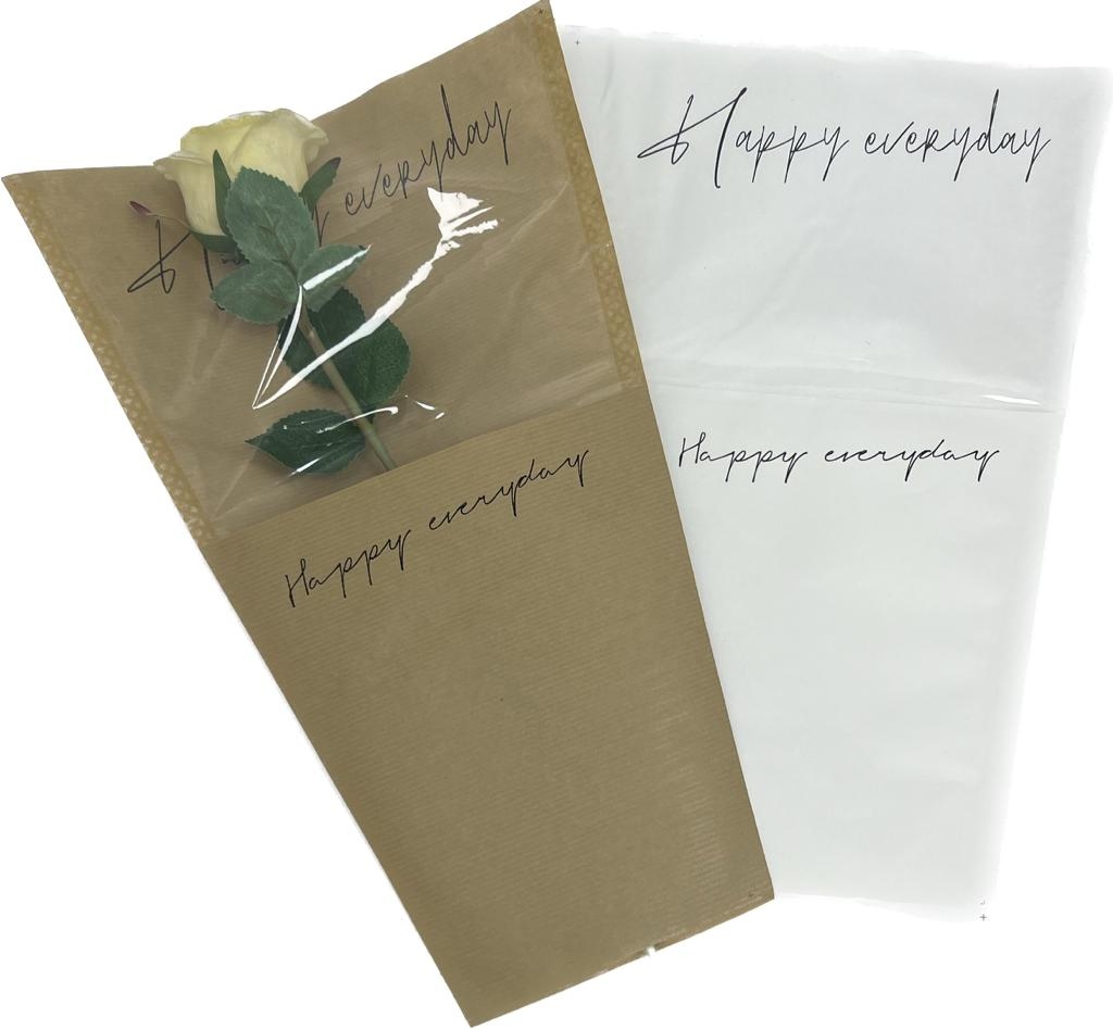 שקית קראפט משולש לזר פרחים 29/43 ס”מ טבעי/לבן (20 יח’ במארז)