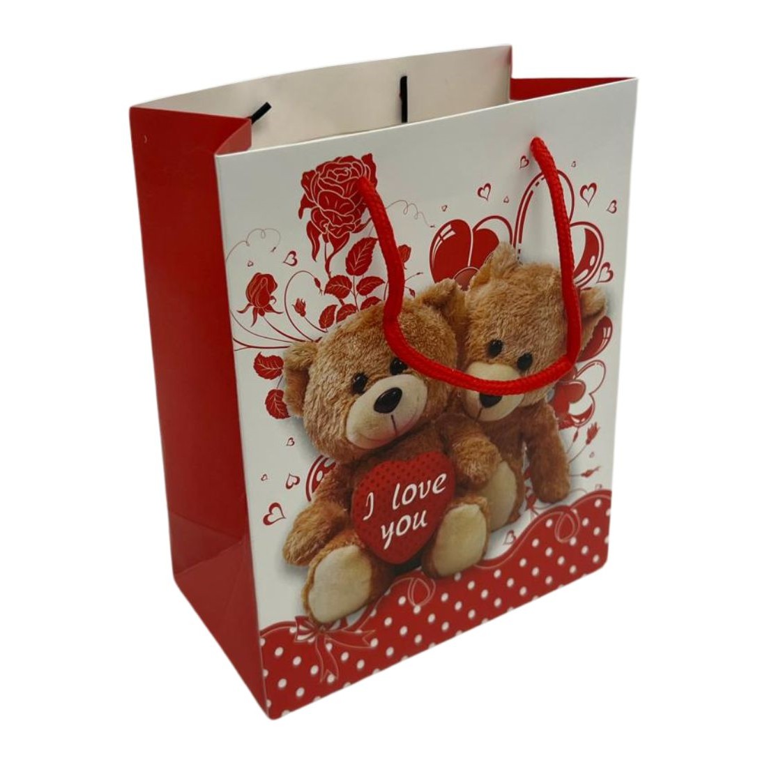 שקית קרטון דובי ולבבות 36/26+10 ס”מ (12 במארז)