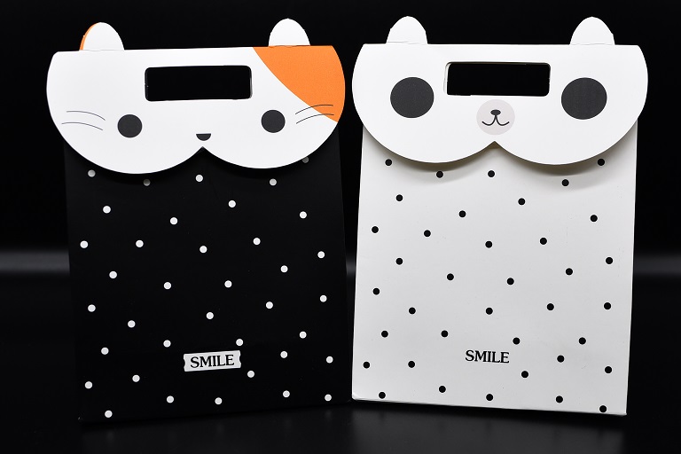 שקית קרטון ידית פנימית דגם חתול 32/24+10 שחור/ לבן (12 במארז)